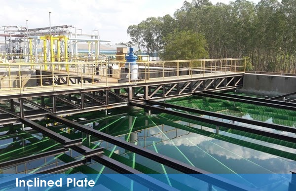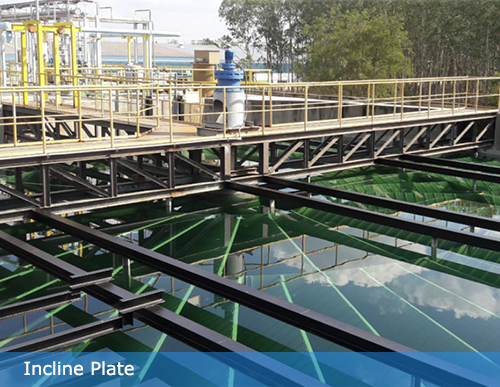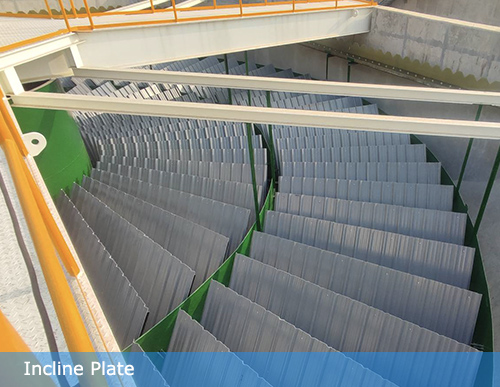 It is made flocby feeding Polymer to Raw Wastewater, and remove turbidity by precipitating in water.It is called Coagulation Precipitation as you know.Inclined Plate is increase efficiencvy of Precipitation. It is just installed Inclined Plate in Sedimentation Tank.Inclined Plate is effected making the time of sedimentation in the Tank by making shorter the Precipitation range for Flock.